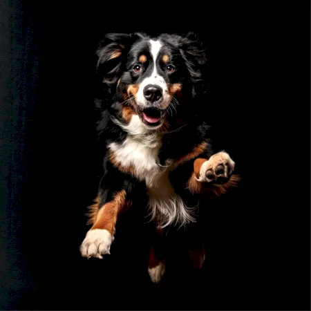 Bernský salašnický pes skakájící černá fotka
