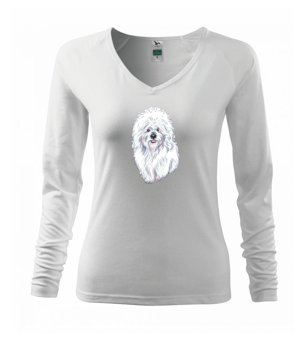 Triko s kresleným bišonkem jako skvělý dárek pro paničku bišonka. Bišonek na triku je esence roztomilosti. Krásný bílý malý pes společenské povahy je jeden z nejroztomilejších, které si můžete u nás pořídit.