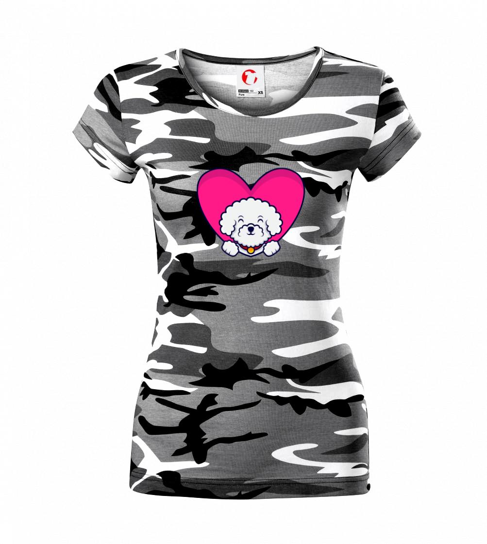 Triko s bišonkem jako skvělý dárek pro paničku bišonka. Bišonek na triku je esence roztomilosti. Krásný bílý malý pes společenské povahy je jeden z nejroztomilejších, které si můžete u nás pořídit.