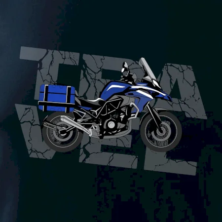 Triko pro motorkáře, na kterém je modrá cestovní enduro motorka. Motorkářské triko, kde je cestovní motorka, musí mít doma každý vášnivý motorkář. Triko s motorkou je vhodný dárek pro motorkáře.