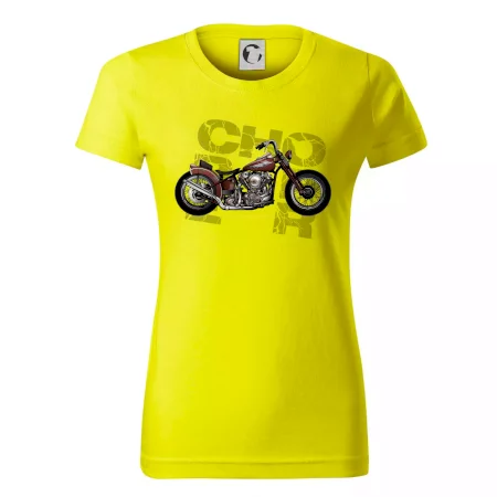 Triko pro motorkáře, na kterém je červená motorka chopper. Motocykl by měl mít na triku každý správný motorkář. Moto triko s motorkou je vhodný dárek pro motorkáře.