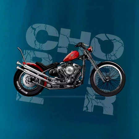 Triko pro motorkáře, na kterém je červená motorka chopper. Motocykl by měl mít na triku každý správný motorkář. Moto triko s motorkou je vhodný dárek pro motorkáře.