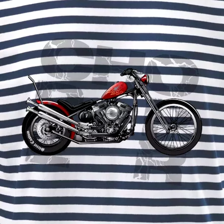 Triko pro motorkáře, na kterém je červená motorka chopper. Motocykl by měl mít na triku každý správný motorkář. Moto triko s motorkou je vhodný dárek pro motorkáře.