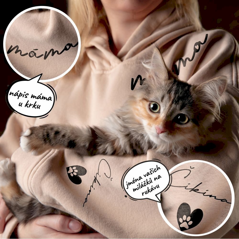Kočičí máma se jmény na rukávu