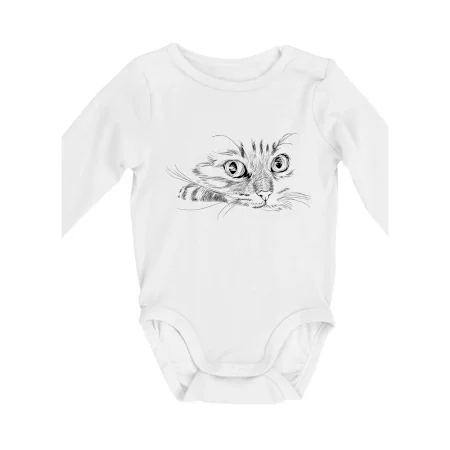 Kočka obličej kreslený - Body kojenecké s dlouhým rukávem