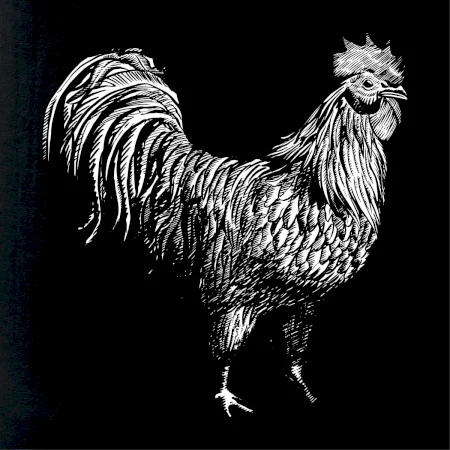 Kohout kreslený černobílý