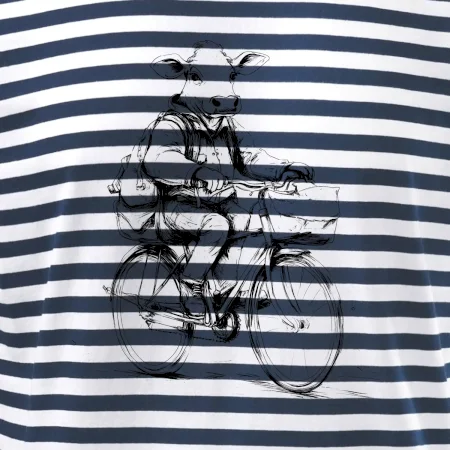 Kráva v obleku na kole