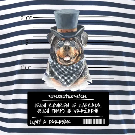 Triko pro pejskaře s nápisem "Jejich revírem je zahrada, jejich tempo je vražedné, lump a darebák". Triko, na kterém je pes rotvajler, by měl doma mít každý správný pejskař. Triko se psem je vhodný dárek pro pejskaře.