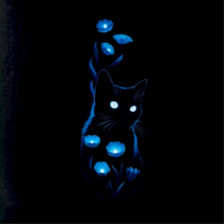 Modře neonová kočka a květy