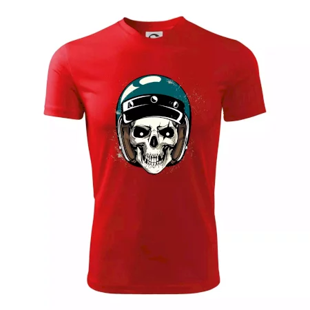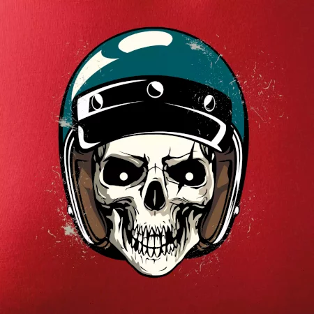 Triko pro motorkáře, na kterém je lebka s helmou, je skvělý dárek pro motorkáře. Modrá motorkářská helma ochrání lebku kostlivce i tu tvou. Každý motorkář bude mít triko s lebkou rád. Moto lebka, hlava kostlivce na tvém triku ukáže, že jsi motorkář až na kost.