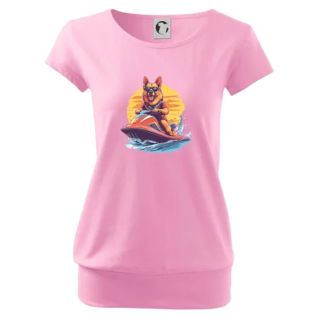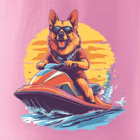 Německý ovčák na vodním skútru
