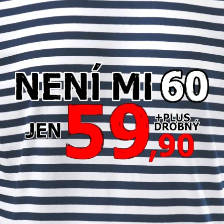 Triko s motivem "Není mi 60, jen 59,90 plus drobný". Narozeninové triko pro oslavence, který oslaví jubileum 60 let, ale připadá si mladší. Dárek k šedesátinám. Triko k šedesátým narozeninám.