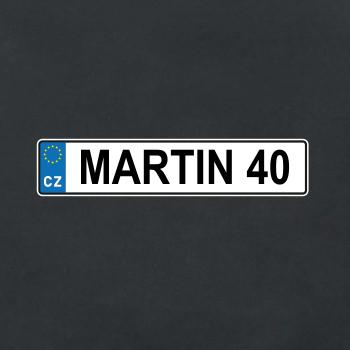 Narozeninové triko s motivem SPZ na auto. Triko pro oslavence Martina, který slaví jubileum 40 let. Dárek ke čtyřicátinám. Narozeninová poznávačka s nápisem Martin 40. Triko s "espézetkou" k narozeninám. Oslav čtyřicátiny s tímhle trikem!