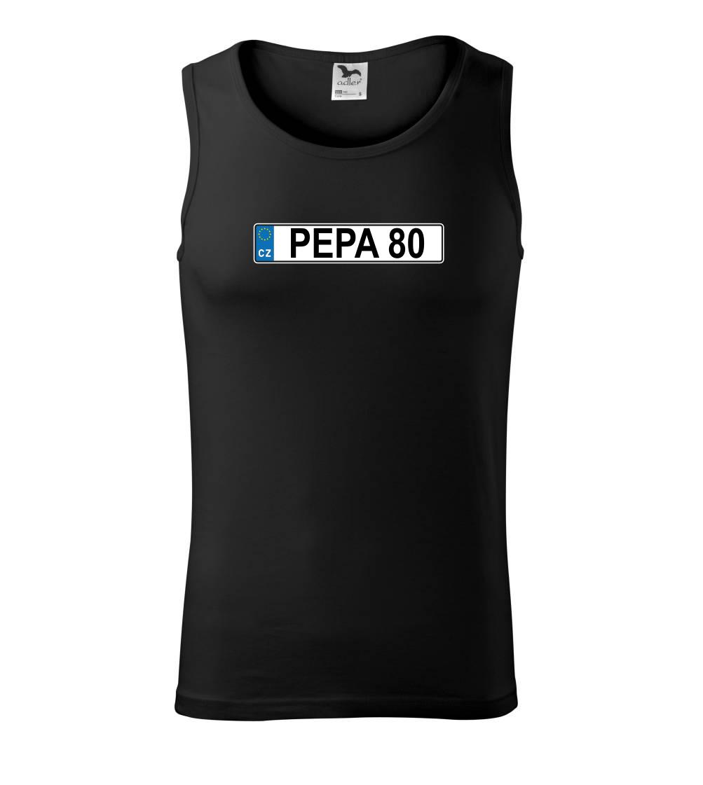 Narozeninové triko s motivem SPZ na auto. Triko pro oslavence Pepu, který slaví jubileum 80 let. Dárek k osmdesátinám. Narozeninová poznávačka s nápisem Pepa 80. Triko s "espézetkou" k narozeninám. Oslav osmdesátiny tímhle trikem!