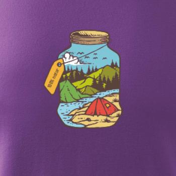 Máš rád hory a stanování? Triko s motivem zavařovací sklenice plné přírody je ideální dárek pro milovníka přírody a stanování. Triko bude chtít každý, kdo tráví v přírodě hodně volného času. Postav si stan a pak už jen pozoruj okolní hory, řeku a užívej si přírody!
