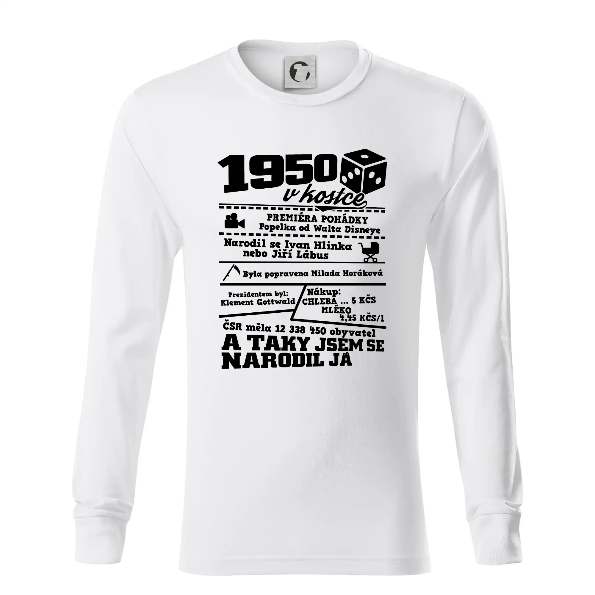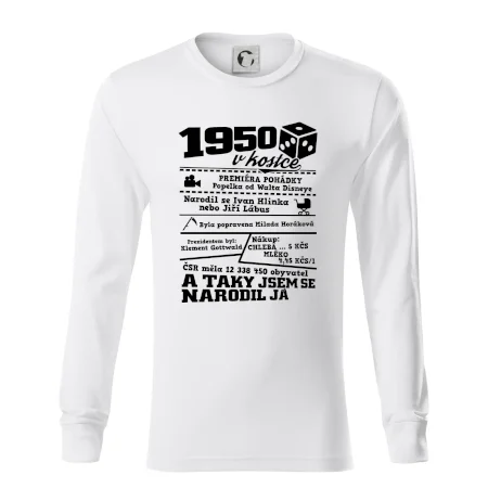Narozeninové tričko pro ročník 1950. Sháníš originální dárek? Triko pro ročník 1950 v kostce je ten nejlepší dárek, kterým jistě potěšíš. Kolik co stálo? Kdo byl prezident? Kdo se narodil? Všechno tohle a ještě mnohem víc najdeš na našem oslaveneckém triku!