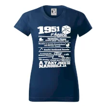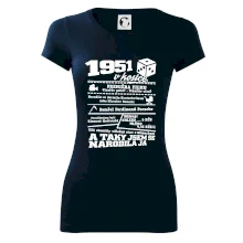 Narozeninové tričko pro ročník 1951. Sháníš originální dárek? Triko pro ročník 1951 v kostce je ten nejlepší dárek, kterým jistě potěšíš. Kolik co stálo? Kdo byl prezident? Kdo se narodil? Všechno tohle a ještě mnohem víc najdeš na našem oslaveneckém triku!