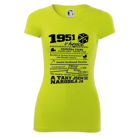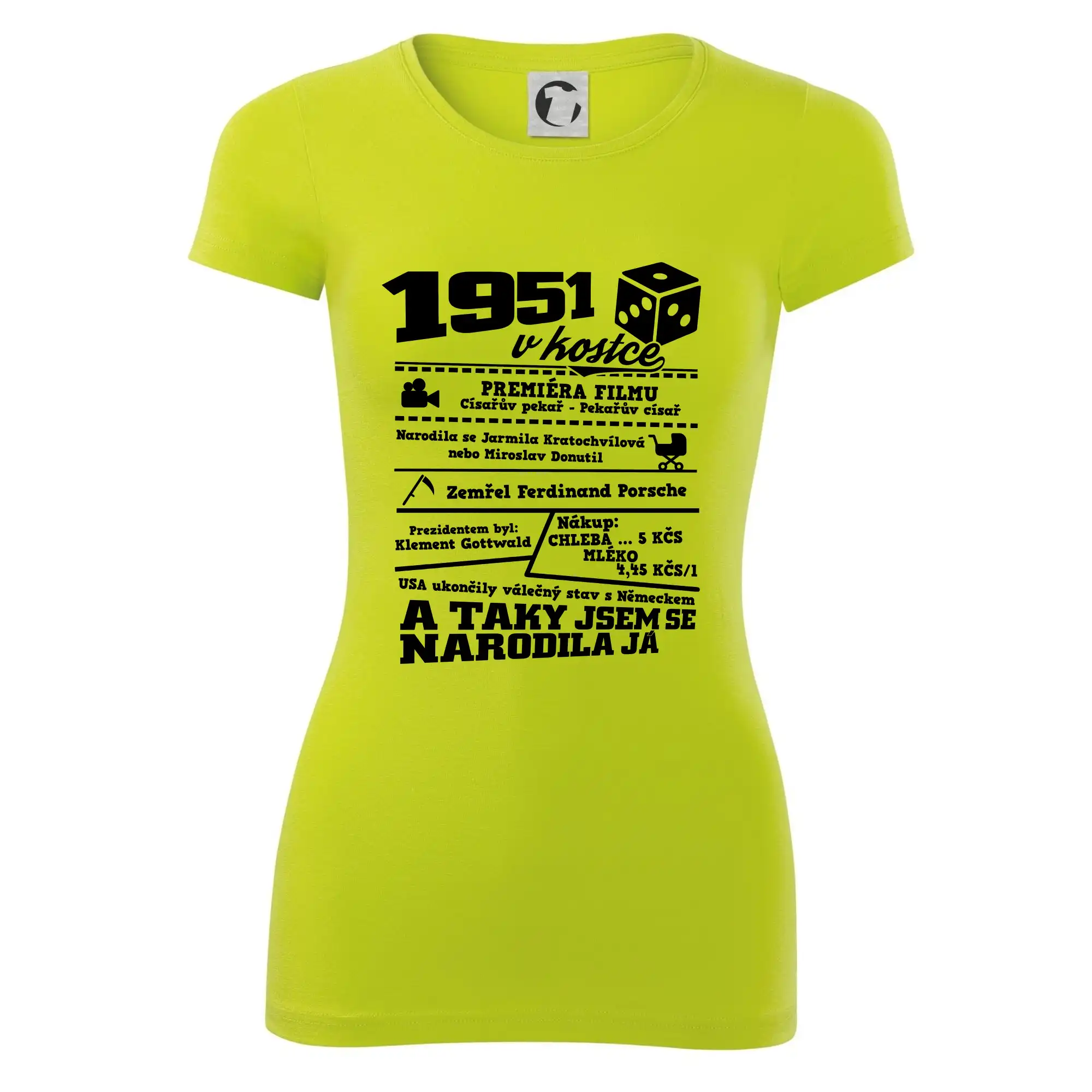 Narozeninové tričko pro ročník 1951. Sháníš originální dárek? Triko pro ročník 1951 v kostce je ten nejlepší dárek, kterým jistě potěšíš. Kolik co stálo? Kdo byl prezident? Kdo se narodil? Všechno tohle a ještě mnohem víc najdeš na našem oslaveneckém triku!