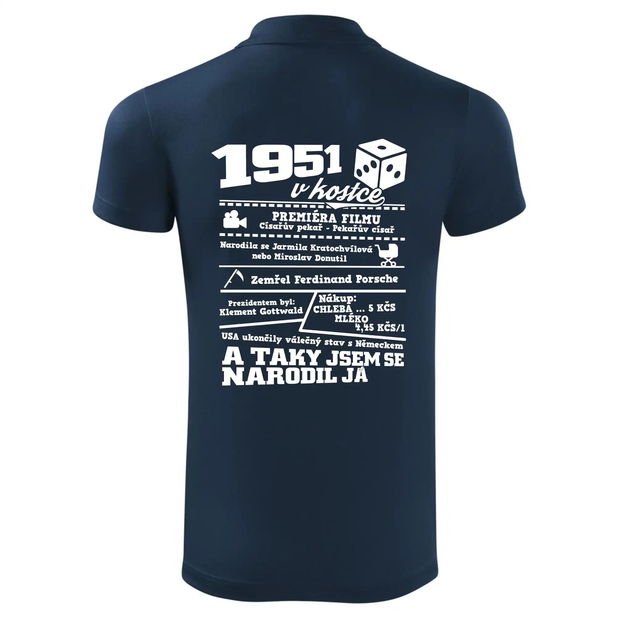 Narozeninové tričko pro ročník 1951. Sháníš originální dárek? Triko pro ročník 1951 v kostce je ten nejlepší dárek, kterým jistě potěšíš. Kolik co stálo? Kdo byl prezident? Kdo se narodil? Všechno tohle a ještě mnohem víc najdeš na našem oslaveneckém triku!