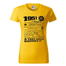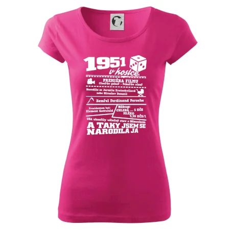 Narozeninové tričko pro ročník 1951. Sháníš originální dárek? Triko pro ročník 1951 v kostce je ten nejlepší dárek, kterým jistě potěšíš. Kolik co stálo? Kdo byl prezident? Kdo se narodil? Všechno tohle a ještě mnohem víc najdeš na našem oslaveneckém triku!