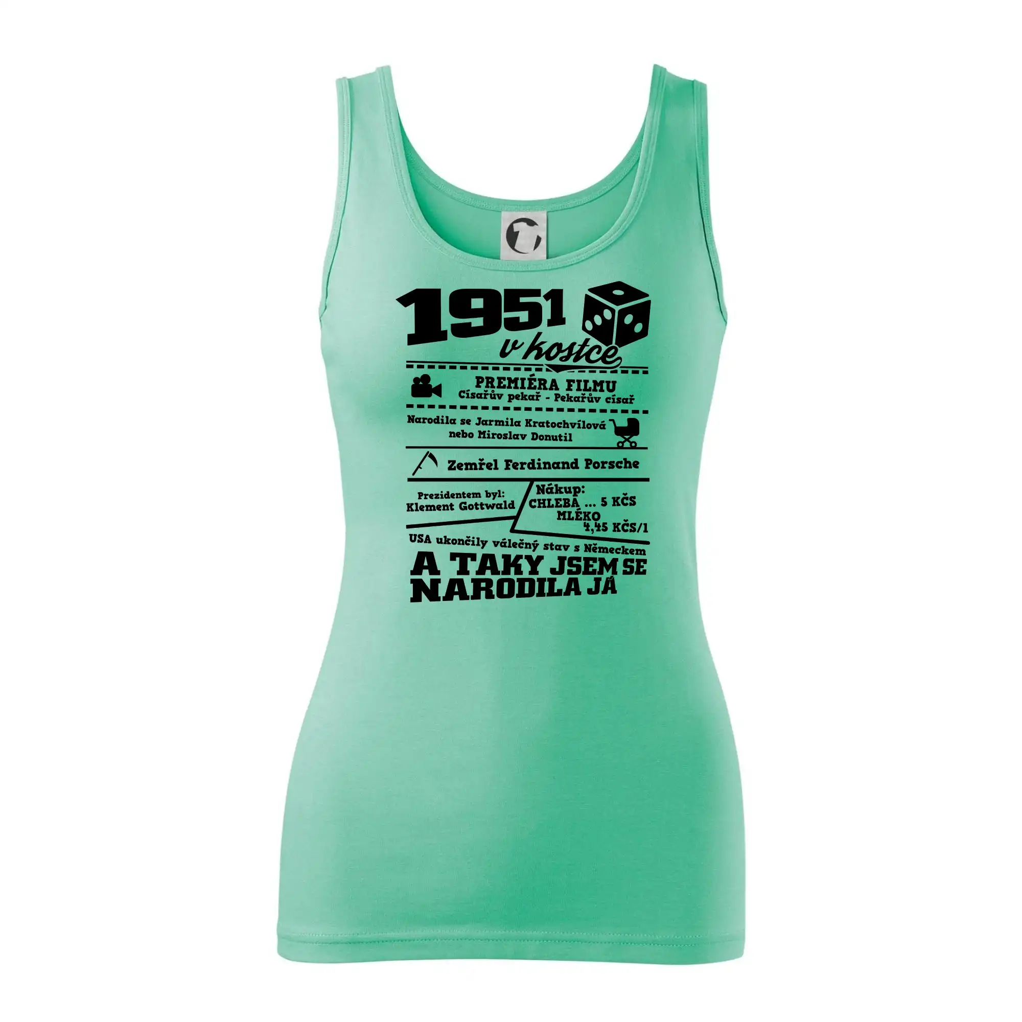 Narozeninové tričko pro ročník 1951. Sháníš originální dárek? Triko pro ročník 1951 v kostce je ten nejlepší dárek, kterým jistě potěšíš. Kolik co stálo? Kdo byl prezident? Kdo se narodil? Všechno tohle a ještě mnohem víc najdeš na našem oslaveneckém triku!