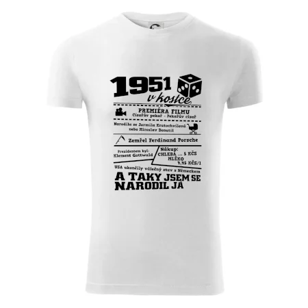Narozeninové tričko pro ročník 1951. Sháníš originální dárek? Triko pro ročník 1951 v kostce je ten nejlepší dárek, kterým jistě potěšíš. Kolik co stálo? Kdo byl prezident? Kdo se narodil? Všechno tohle a ještě mnohem víc najdeš na našem oslaveneckém triku!