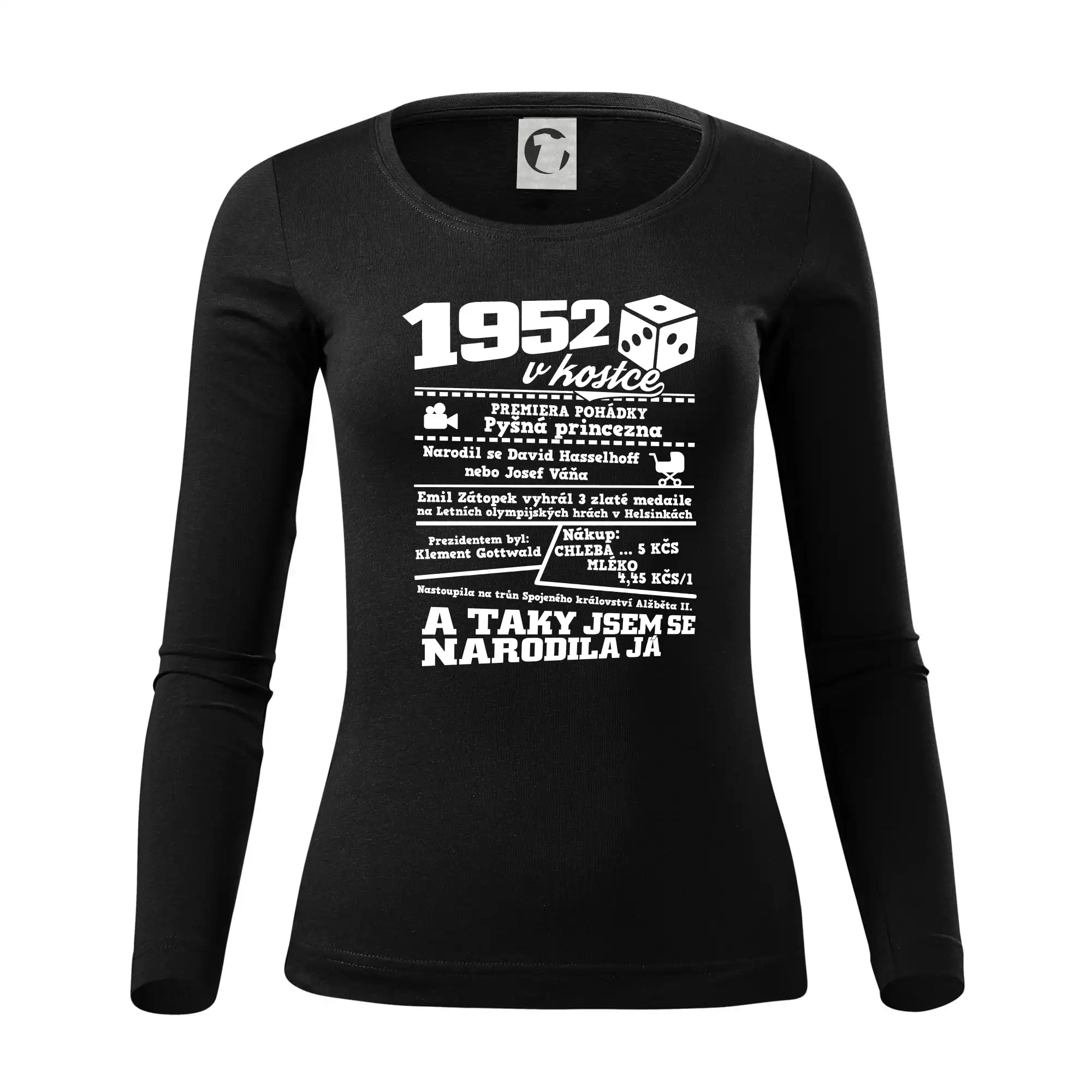 Narozeninové tričko pro ročník 1952. Sháníš originální dárek? Triko pro ročník 1952 v kostce je ten nejlepší dárek, kterým jistě potěšíš. Kolik co stálo? Kdo byl prezident? Kdo se narodil? Všechno tohle a ještě mnohem víc najdeš na našem oslaveneckém triku!