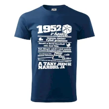 Narozeninové tričko pro ročník 1952. Sháníš originální dárek? Triko pro ročník 1952 v kostce je ten nejlepší dárek, kterým jistě potěšíš. Kolik co stálo? Kdo byl prezident? Kdo se narodil? Všechno tohle a ještě mnohem víc najdeš na našem oslaveneckém triku!