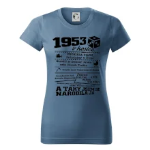 Narozeninové tričko pro ročník 1953. Sháníš originální dárek? Triko pro ročník 1953 v kostce je ten nejlepší dárek, kterým jistě potěšíš. Kolik co stálo? Kdo byl prezident? Kdo se narodil? Všechno tohle a ještě mnohem víc najdeš na našem oslaveneckém triku!