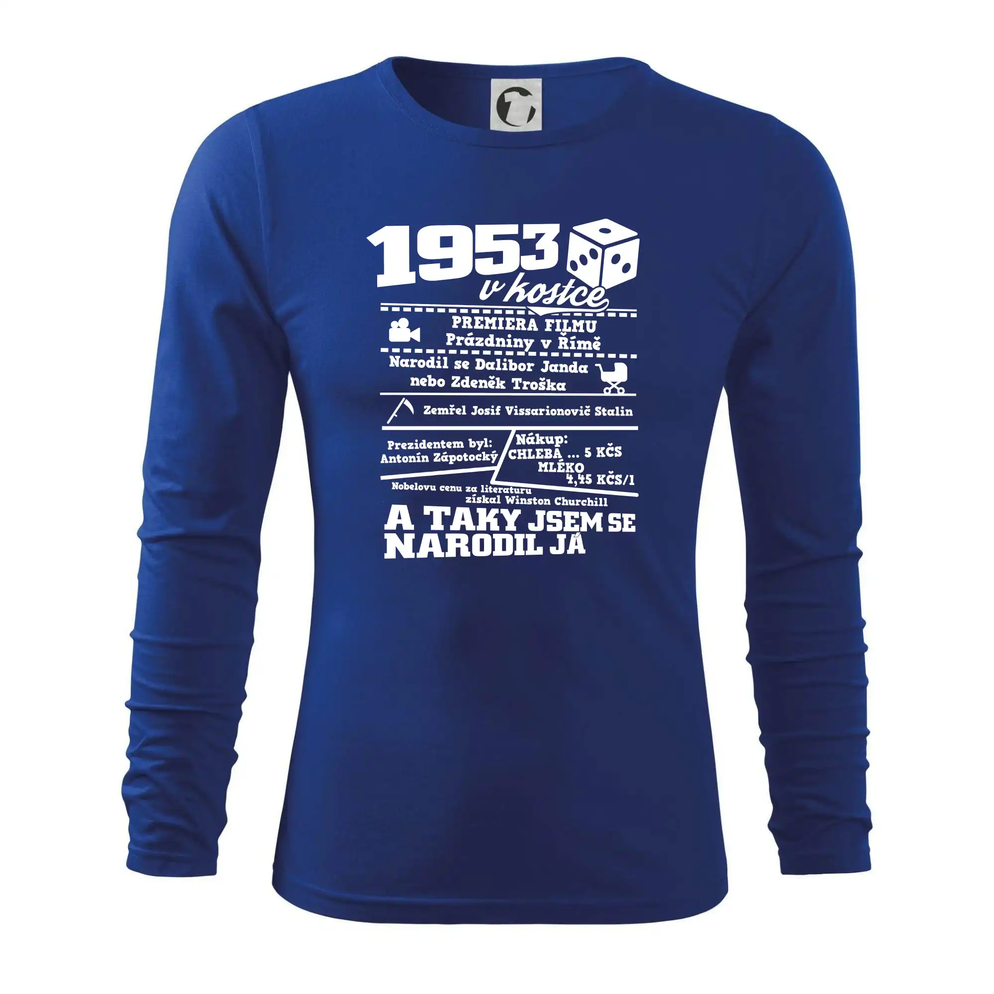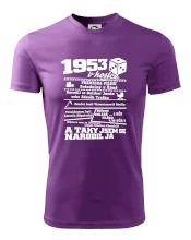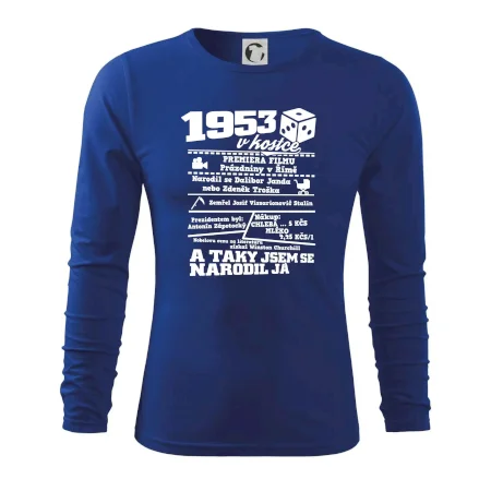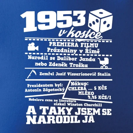 Narozeninové tričko pro ročník 1953. Sháníš originální dárek? Triko pro ročník 1953 v kostce je ten nejlepší dárek, kterým jistě potěšíš. Kolik co stálo? Kdo byl prezident? Kdo se narodil? Všechno tohle a ještě mnohem víc najdeš na našem oslaveneckém triku!