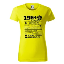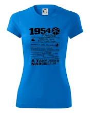 Narozeninové tričko pro ročník 1954. Sháníš originální dárek? Triko pro ročník 1954 v kostce je ten nejlepší dárek, kterým jistě potěšíš. Kolik co stálo? Kdo byl prezident? Kdo se narodil? Všechno tohle a ještě mnohem víc najdeš na našem oslaveneckém triku!