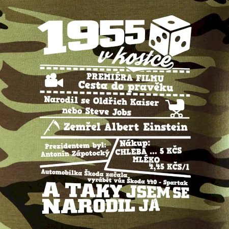 Narozeninové tričko pro ročník 1955. Sháníš originální dárek? Triko pro ročník 1955 v kostce je ten nejlepší dárek, kterým jistě potěšíš. Kolik co stálo? Kdo byl prezident? Kdo se narodil? Všechno tohle a ještě mnohem víc najdeš na našem oslaveneckém triku!