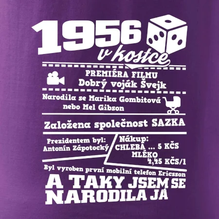 Narozeninové tričko pro ročník 1956. Sháníš originální dárek? Triko pro ročník 1956 v kostce je ten nejlepší dárek, kterým jistě potěšíš. Kolik co stálo? Kdo byl prezident? Kdo se narodil? Všechno tohle a ještě mnohem víc najdeš na našem oslaveneckém triku!