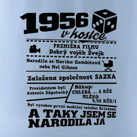 Narozeninové tričko pro ročník 1956. Sháníš originální dárek? Triko pro ročník 1956 v kostce je ten nejlepší dárek, kterým jistě potěšíš. Kolik co stálo? Kdo byl prezident? Kdo se narodil? Všechno tohle a ještě mnohem víc najdeš na našem oslaveneckém triku!