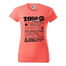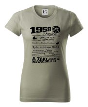 Narozeninové tričko pro ročník 1958. Sháníš originální dárek? Triko pro ročník 1958 v kostce je ten nejlepší dárek, kterým jistě potěšíš. Kolik co stálo? Kdo byl prezident? Kdo se narodil? Všechno tohle a ještě mnohem víc najdeš na našem oslaveneckém triku!