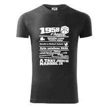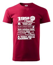 Narozeninové tričko pro ročník 1958. Sháníš originální dárek? Triko pro ročník 1958 v kostce je ten nejlepší dárek, kterým jistě potěšíš. Kolik co stálo? Kdo byl prezident? Kdo se narodil? Všechno tohle a ještě mnohem víc najdeš na našem oslaveneckém triku!