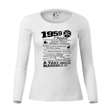 Narozeninové tričko pro ročník 1959. Sháníš originální dárek? Triko pro ročník 1959 v kostce je ten nejlepší dárek, kterým jistě potěšíš. Kolik co stálo? Kdo byl prezident? Kdo se narodil? Všechno tohle a ještě mnohem víc najdeš na našem oslaveneckém triku!
