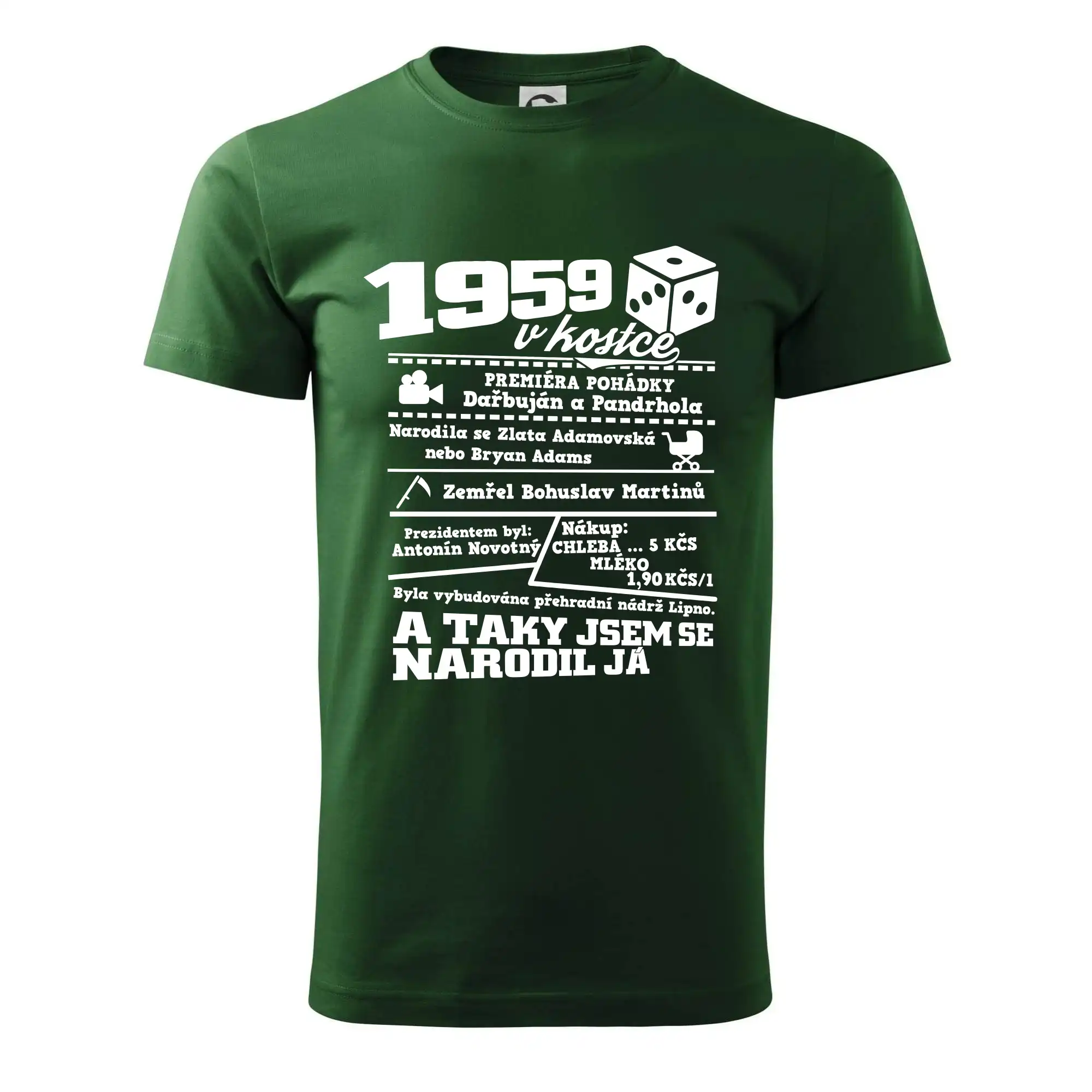 Narozeninové tričko pro ročník 1959. Sháníš originální dárek? Triko pro ročník 1959 v kostce je ten nejlepší dárek, kterým jistě potěšíš. Kolik co stálo? Kdo byl prezident? Kdo se narodil? Všechno tohle a ještě mnohem víc najdeš na našem oslaveneckém triku!