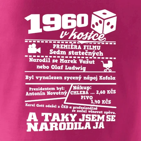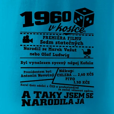 Narozeninové tričko pro ročník 1960. Sháníš originální dárek? Triko pro ročník 1960 v kostce je ten nejlepší dárek, kterým jistě potěšíš. Kolik co stálo? Kdo byl prezident? Kdo se narodil? Všechno tohle a ještě mnohem víc najdeš na našem oslaveneckém triku!
