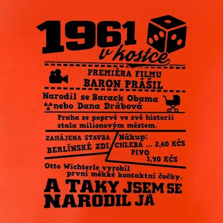 Narozeninové tričko pro ročník 1961. Sháníš originální dárek? Triko pro ročník 1961 v kostce je ten nejlepší dárek, kterým jistě potěšíš. Kolik co stálo? Kdo byl prezident? Kdo se narodil? Všechno tohle a ještě mnohem víc najdeš na našem oslaveneckém triku!