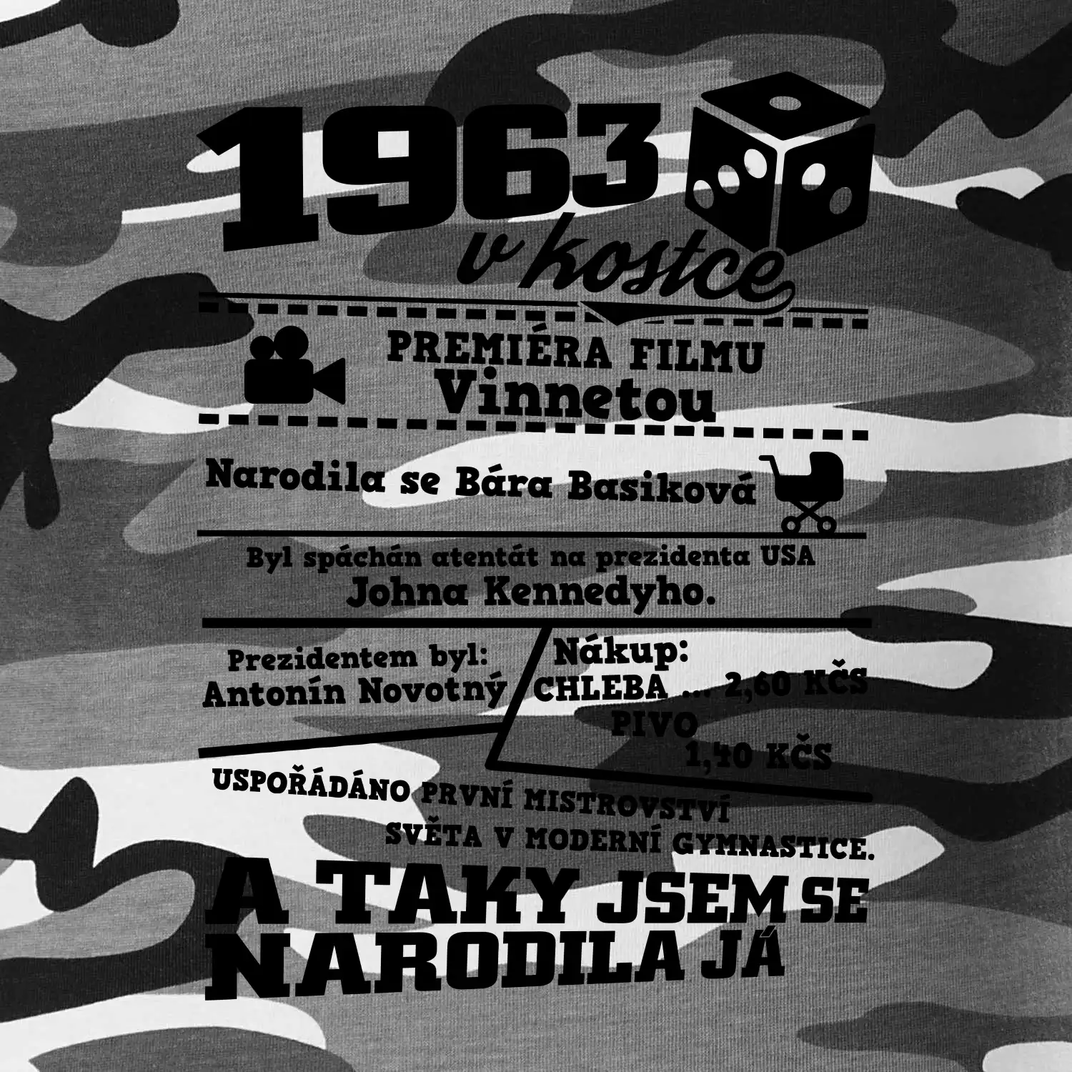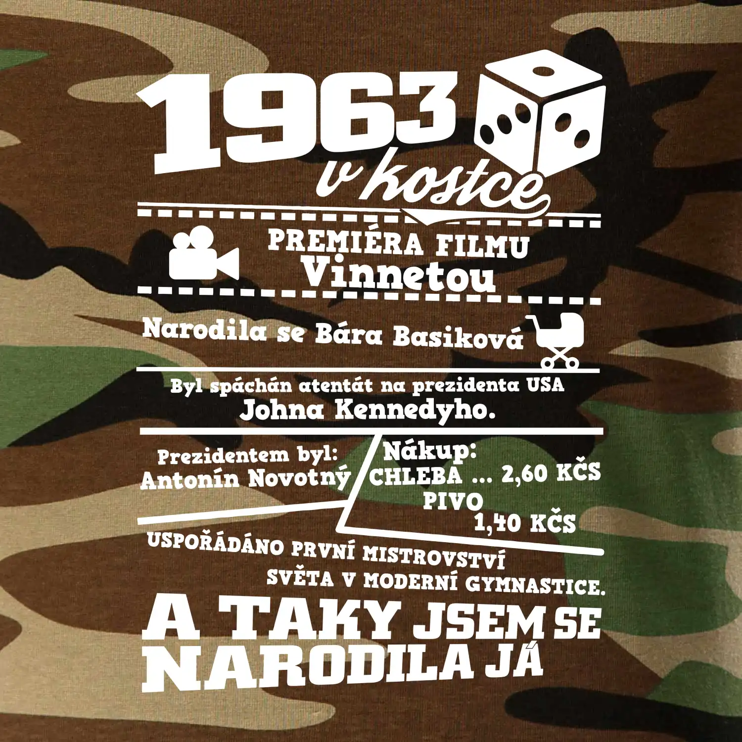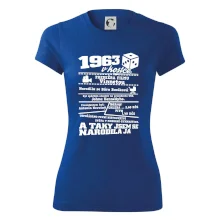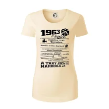 Narozeninové tričko pro ročník 1963. Sháníš originální dárek? Triko pro ročník 1963 v kostce je ten nejlepší dárek, kterým jistě potěšíš. Kolik co stálo? Kdo byl prezident? Kdo se narodil? Všechno tohle a ještě mnohem víc najdeš na našem oslaveneckém triku!
