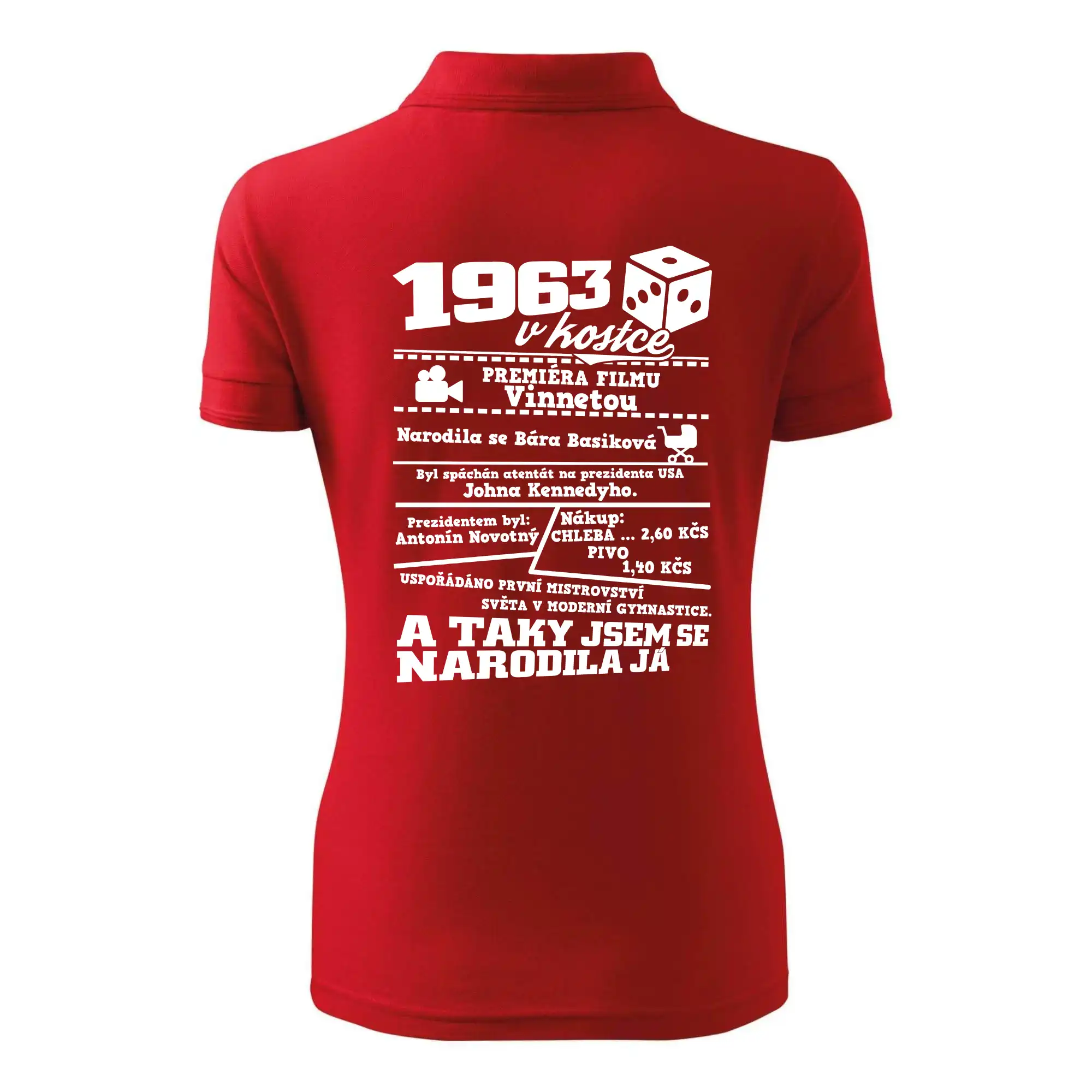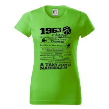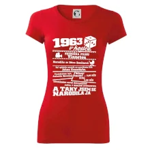Narozeninové tričko pro ročník 1963. Sháníš originální dárek? Triko pro ročník 1963 v kostce je ten nejlepší dárek, kterým jistě potěšíš. Kolik co stálo? Kdo byl prezident? Kdo se narodil? Všechno tohle a ještě mnohem víc najdeš na našem oslaveneckém triku!