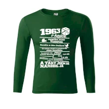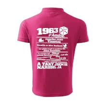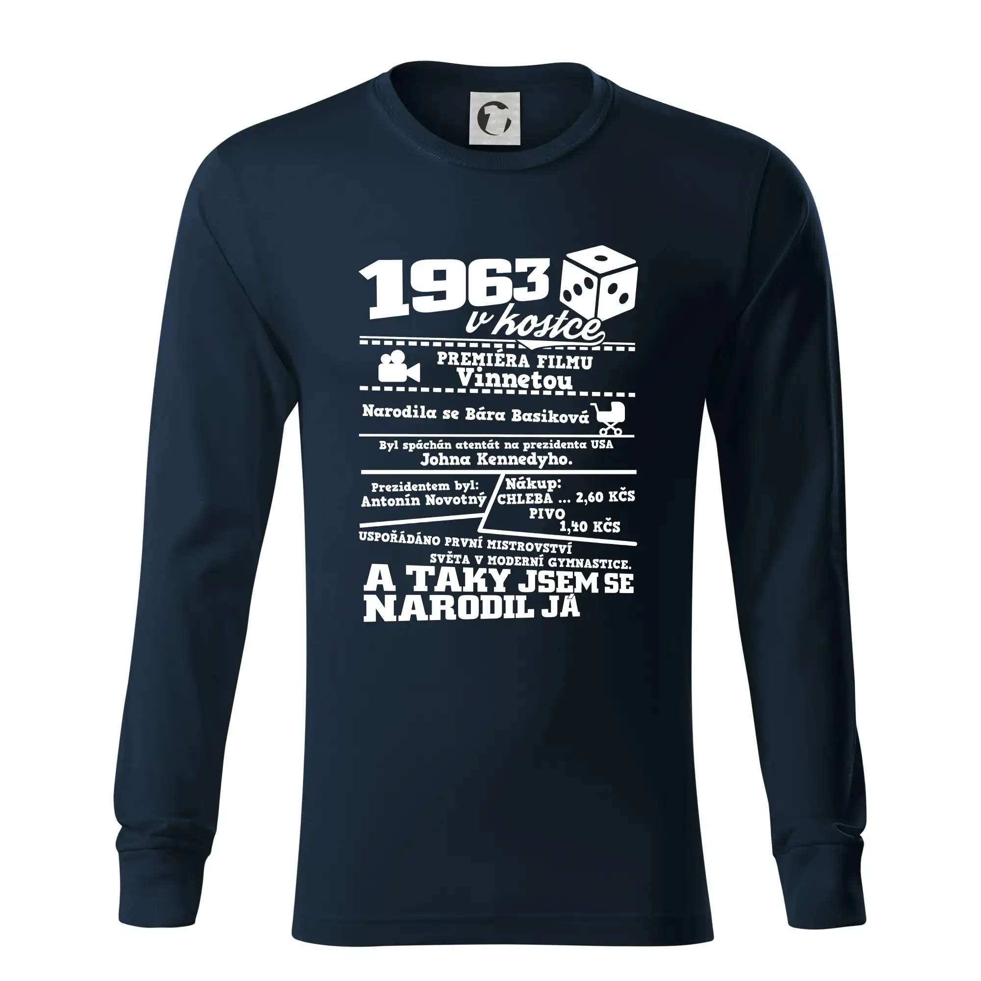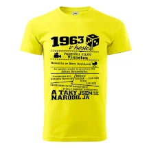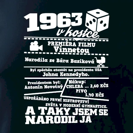 Narozeninové tričko pro ročník 1963. Sháníš originální dárek? Triko pro ročník 1963 v kostce je ten nejlepší dárek, kterým jistě potěšíš. Kolik co stálo? Kdo byl prezident? Kdo se narodil? Všechno tohle a ještě mnohem víc najdeš na našem oslaveneckém triku!
