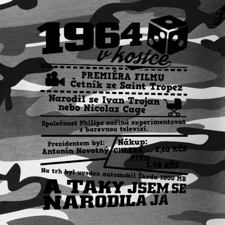 Narozeninové tričko pro ročník 1964. Sháníš originální dárek? Triko pro ročník 1964 v kostce je ten nejlepší dárek, kterým jistě potěšíš. Kolik co stálo? Kdo byl prezident? Kdo se narodil? Všechno tohle a ještě mnohem víc najdeš na našem oslaveneckém triku!