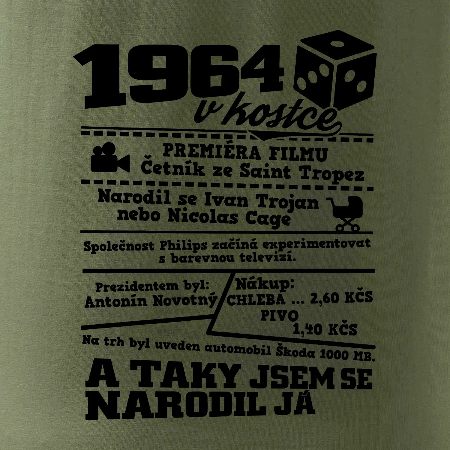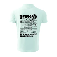 Narozeninové tričko pro ročník 1964. Sháníš originální dárek? Triko pro ročník 1964 v kostce je ten nejlepší dárek, kterým jistě potěšíš. Kolik co stálo? Kdo byl prezident? Kdo se narodil? Všechno tohle a ještě mnohem víc najdeš na našem oslaveneckém triku!