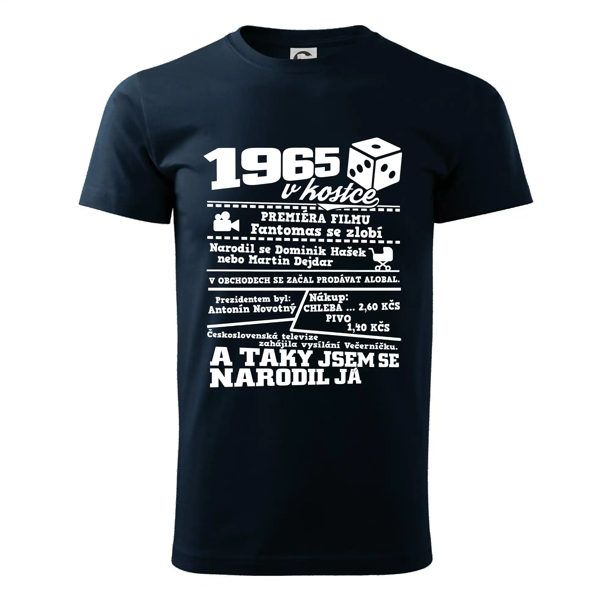 Toto tričko je stylem i obsahem návratem do roku 1965 kde najdete zajímavé informace o roce narození, například události, ceny, rekordy nebo slavné osobnosti. Každý detail trika připomene atmosféru šedesátých let a udělá z nositele originál, který svůj legendární ročník hrdě nosí na hrudi.