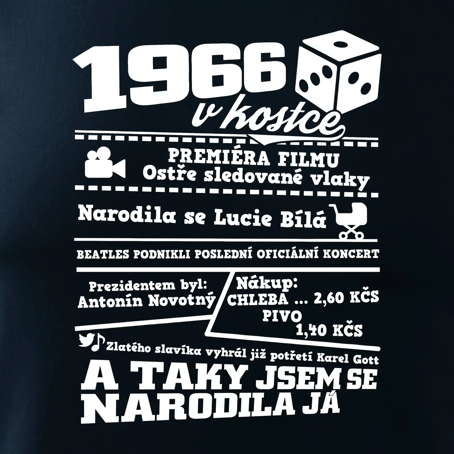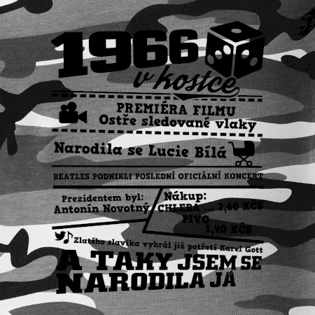 Narozeninové tričko pro ročník 1966. Sháníš originální dárek? Triko pro ročník 1966 v kostce je ten nejlepší dárek, kterým jistě potěšíš. Kolik co stálo? Kdo byl prezident? Kdo se narodil? Všechno tohle a ještě mnohem víc najdeš na našem oslaveneckém triku!