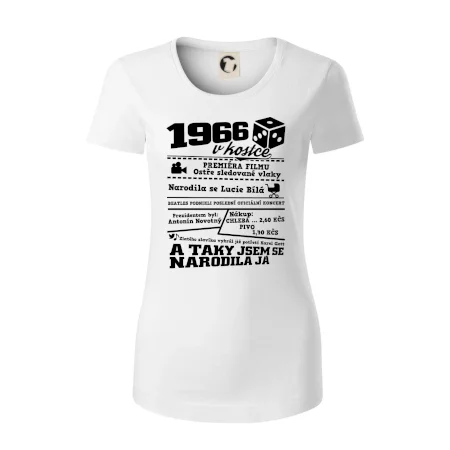 Narozeninové tričko pro ročník 1966. Sháníš originální dárek? Triko pro ročník 1966 v kostce je ten nejlepší dárek, kterým jistě potěšíš. Kolik co stálo? Kdo byl prezident? Kdo se narodil? Všechno tohle a ještě mnohem víc najdeš na našem oslaveneckém triku!