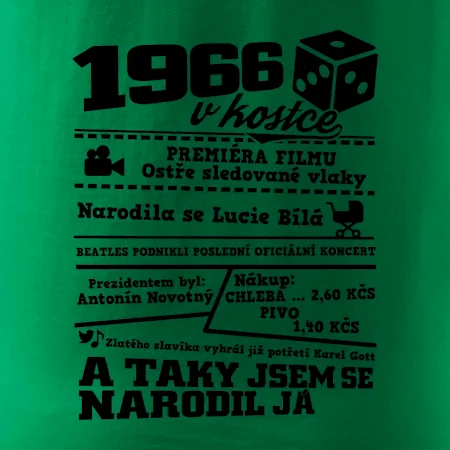 Narozeninové tričko pro ročník 1966. Sháníš originální dárek? Triko pro ročník 1966 v kostce je ten nejlepší dárek, kterým jistě potěšíš. Kolik co stálo? Kdo byl prezident? Kdo se narodil? Všechno tohle a ještě mnohem víc najdeš na našem oslaveneckém triku!