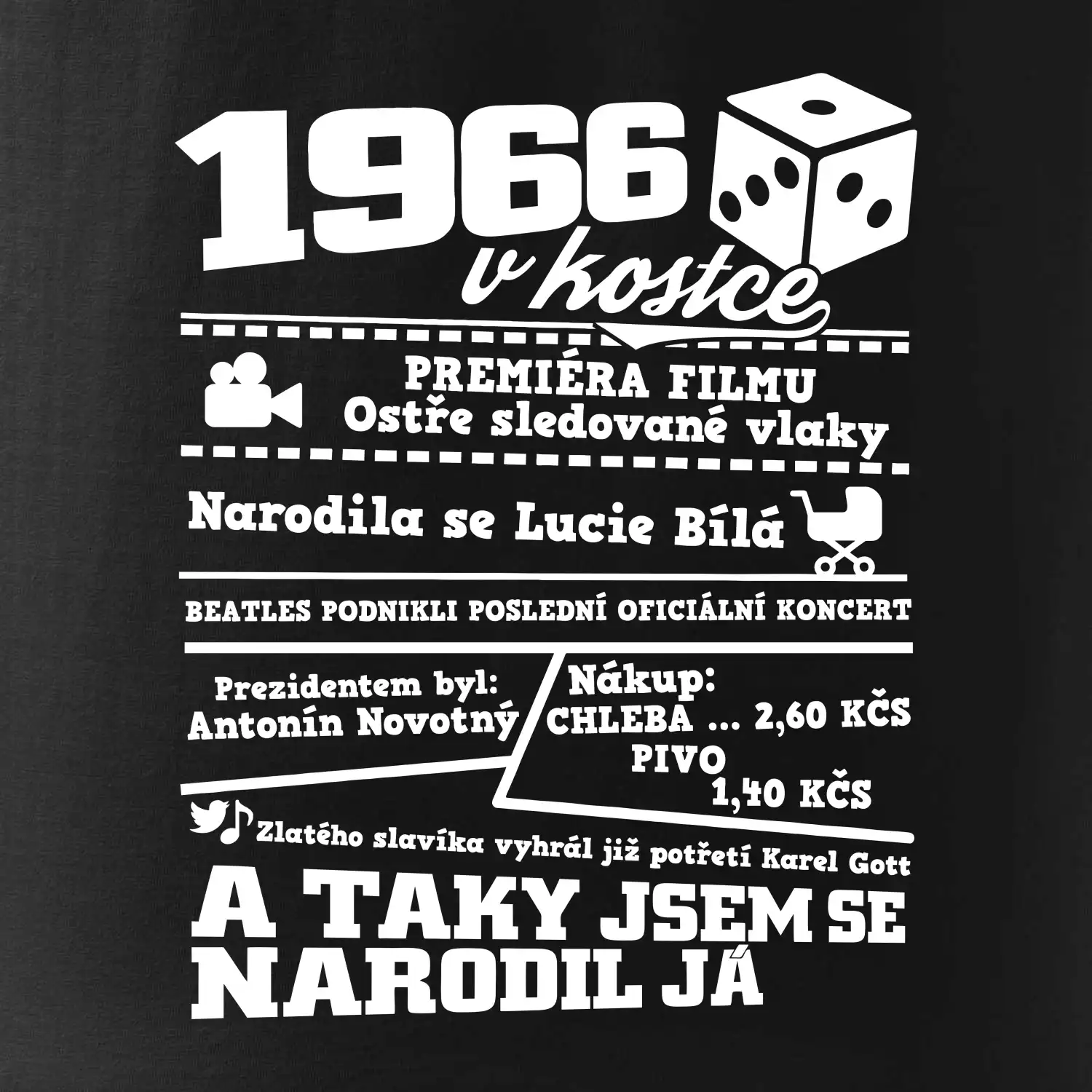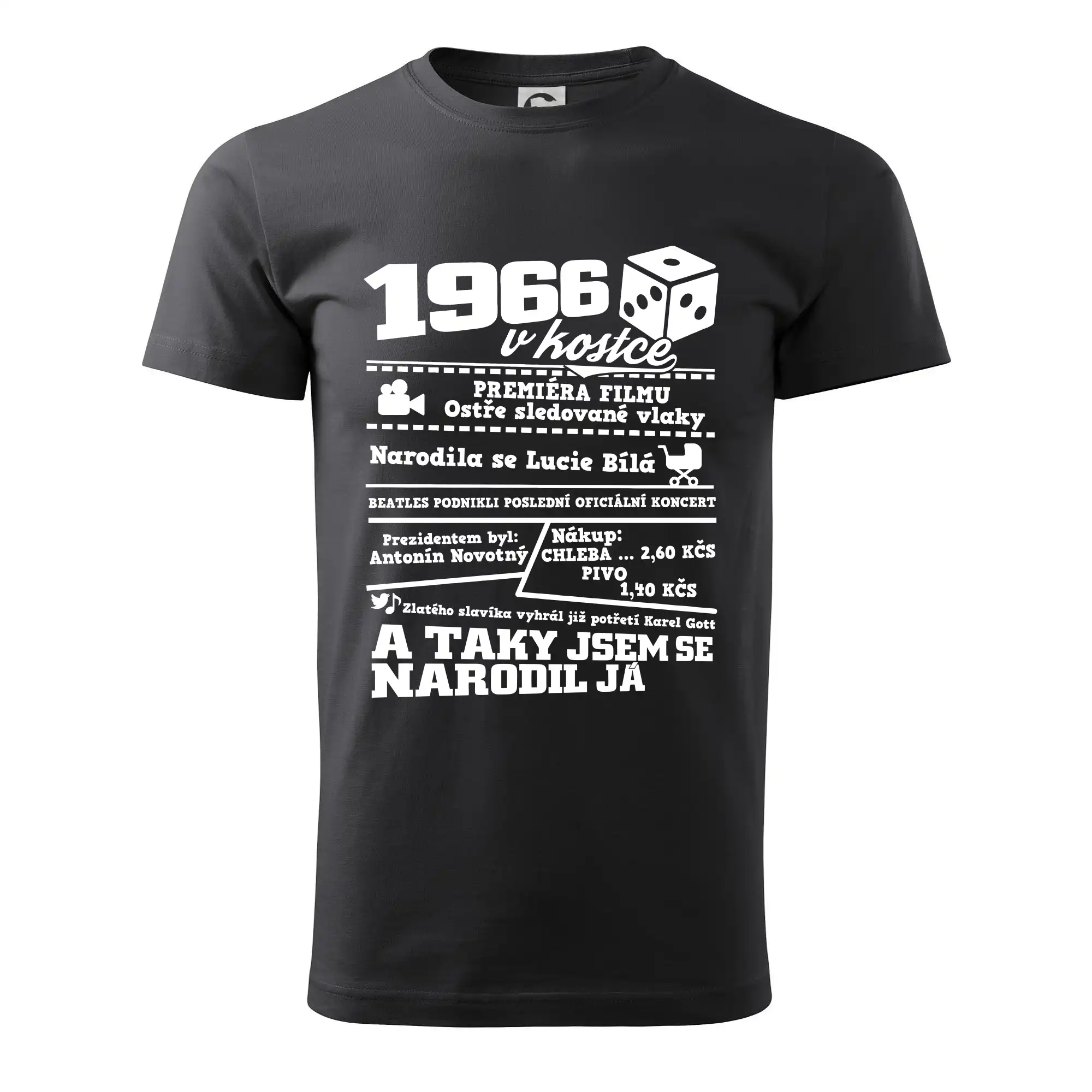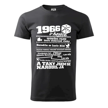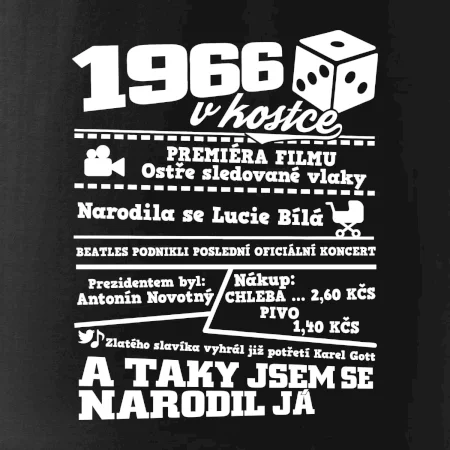 Narozeninové tričko pro ročník 1966. Sháníš originální dárek? Triko pro ročník 1966 v kostce je ten nejlepší dárek, kterým jistě potěšíš. Kolik co stálo? Kdo byl prezident? Kdo se narodil? Všechno tohle a ještě mnohem víc najdeš na našem oslaveneckém triku!